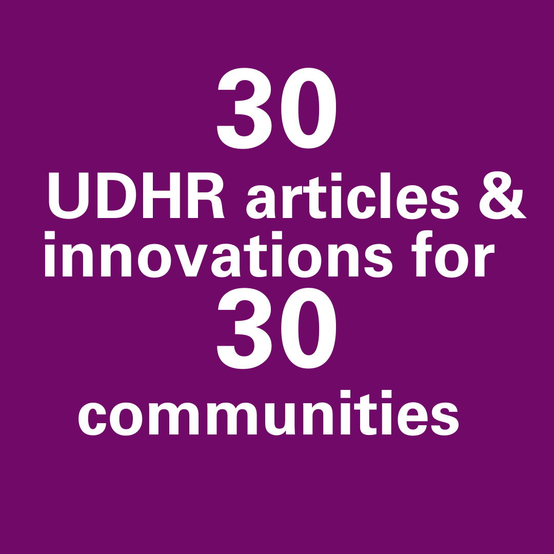 30 x 30 x 30 is an ambitious initiative to deliver 30 human rights innovations for 30 communities by 2030, aligned with the 30 articles of the Universal Declaration of Human Rights.