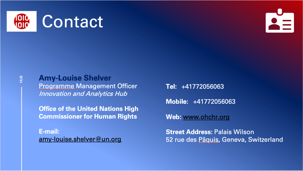 The catalogue is currently being developed by the UN Human Rights Innovation & Analytics Hub with partners. Check back soon for updates.